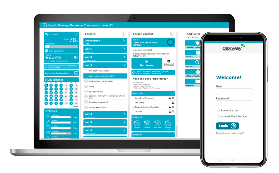 El LMS Dexway llave en mano permite a academias, centros educativos y empresas tener un control completo sobre sus programas de formación en idiomas. Desde la matriculación hasta la evaluación y certificación, todo el proceso formativo se gestiona desde un entorno personalizable, accesible desde cualquier dispositivo.